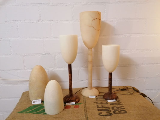 Tischlampe Copa, klein, glatt, aus Alabaster